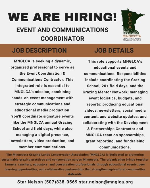 The Minnesota Grazing Lands Conservation Association (MNGLCA) is a grassroots 501(c)(3) Non-Profit group organized to promote the health and sustainability of the state of Minnesota's 4.63 million acres of grazing lands. We were incorporated in the state of Minnesota in 2009 and gained our Non-Profit status in 2010.