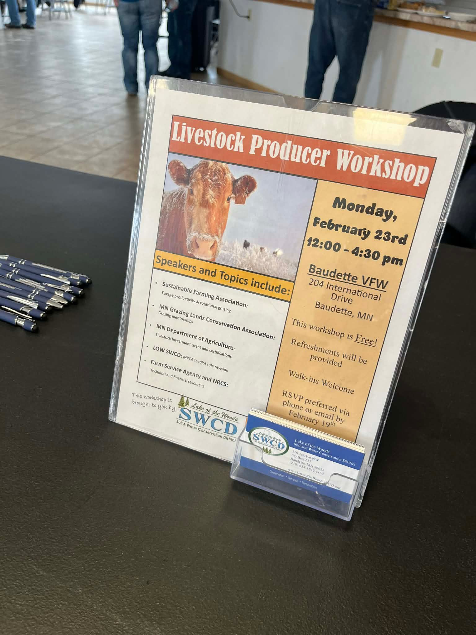 What a privilege it was to travel to the beautiful northern city of Baudette, Minnesota, for the Producer Livestock Workshop hosted by the Lake of the Woods Soil and Water Conservation District! MNGLCA was honored to be among an outstanding lineup of presenters and a room full of passionate, dedicated producers eager to learn and connect.