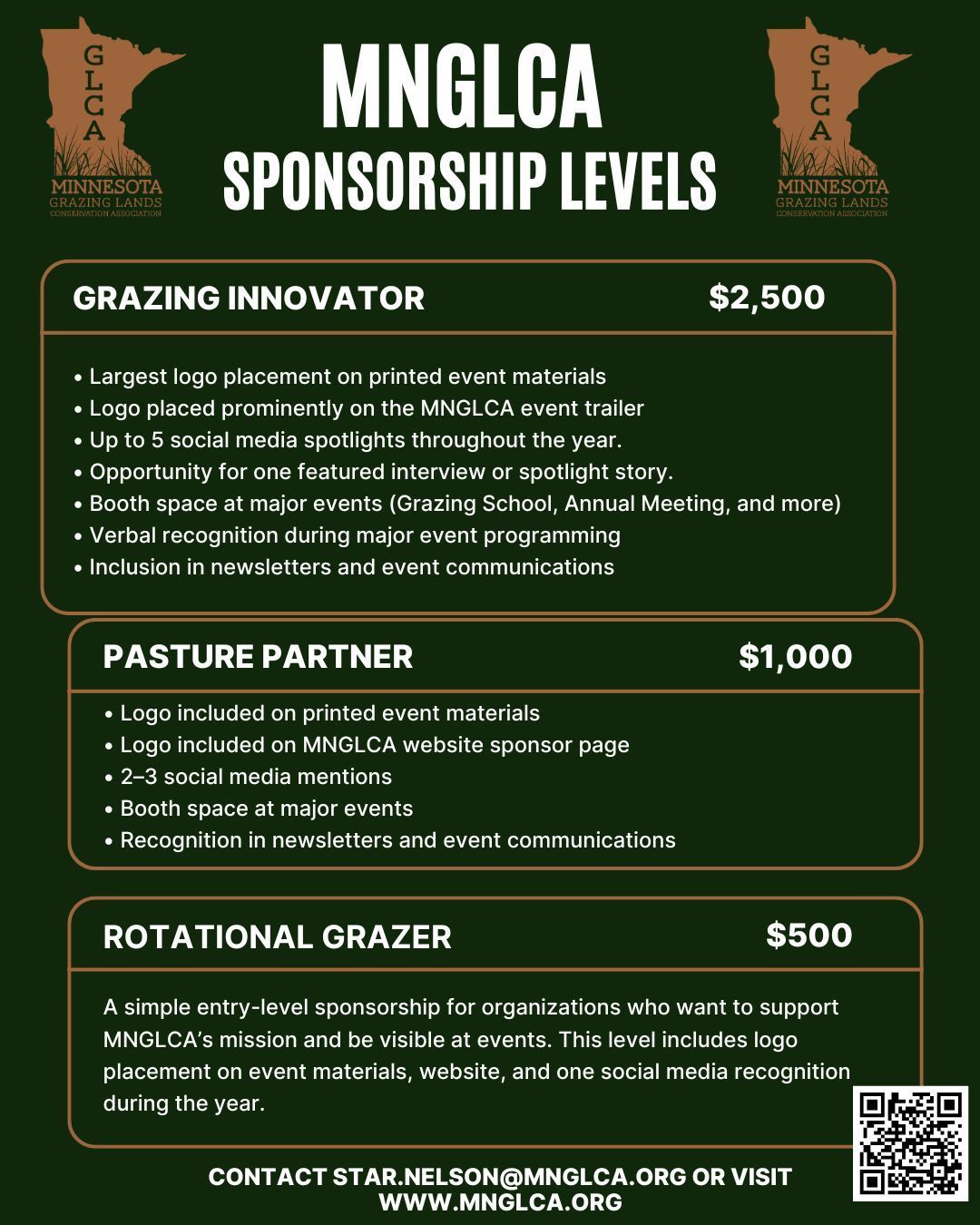 MNGLCA belives in the incredible potential of Minnesota's vast 4.6 million acres of grazing lands. By partnering with passionate sponsors like you, we can work together to educate ranchers of all types about sustainable grazing practices that not only protect our environment but also enhance their profitability. Imagine fostering a community where ranchers feel empowered to adopt innovative techniques that boost their livestock health and improve their bottom line while simultaneously supporting the diverse wildlife that calls this land home. Together, we can create a ripple effect of positive change that echoes across our beautiful state!